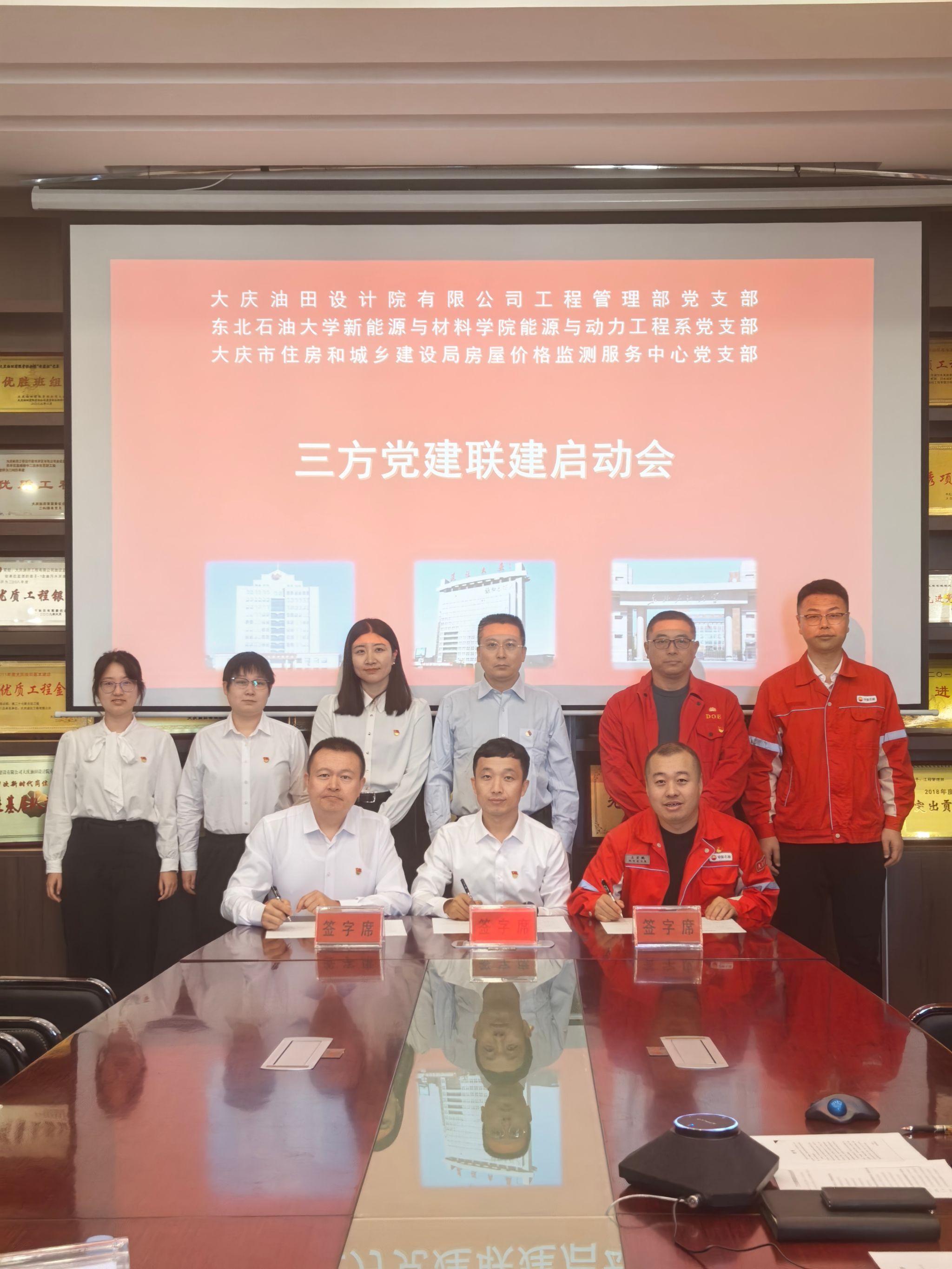 为深入贯彻习近平新时代中国特色社会主义思想,进一步加强和改进党的建设,促进政府、企业、学校之间深度融合与交流合作,共同提升党建工作水平,10月20日上午,伟德国际victor·1946源自能源与动力工程系党支部与大庆油田设计院有限公司工程管理部党支部、大庆市住房和城乡建设局房屋价格监测服务中心党支部三方党建联建启动会在大庆油田设计院有限公司工程管理部二楼会议室召开。大庆油田设计院有限公司工程管理部党支部书记王宏鹏主持,三方党支部支委成员及党员代表参会。
