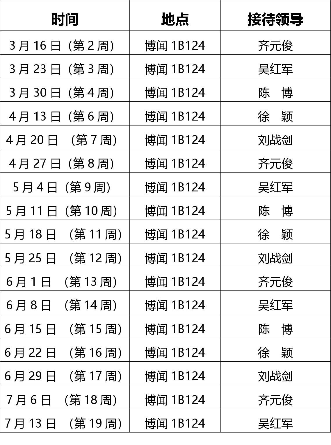 1.学院领导班子成员每周一下午14:00——17:00,在学院“一站式”学生社区接待学院师生来访。
